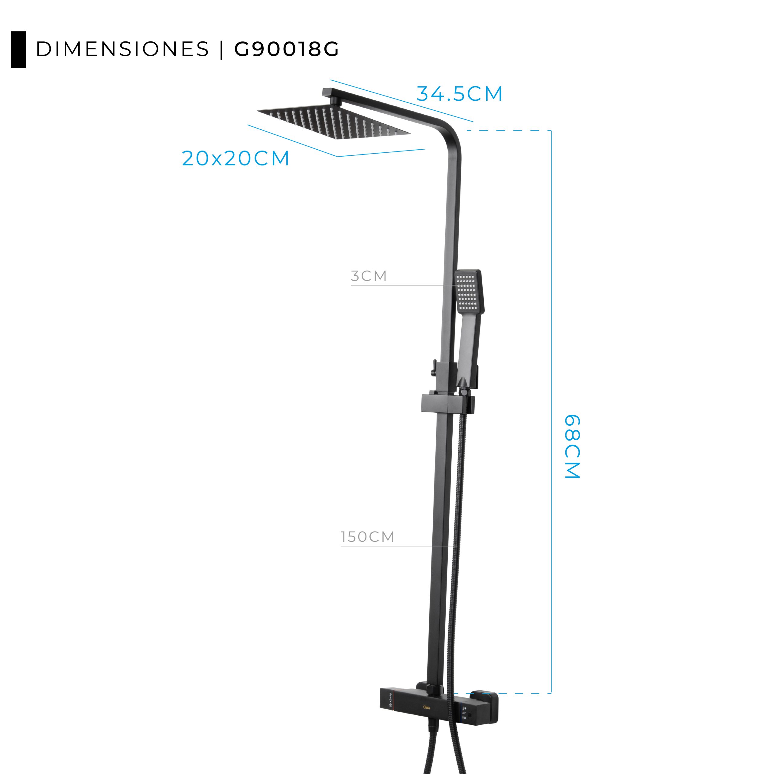 GRIFERÍA COLUMNA DUCHA EXTERIOR BRONCE TERMOSTÁTICA CON DUCHADOR EXTRAPLANO