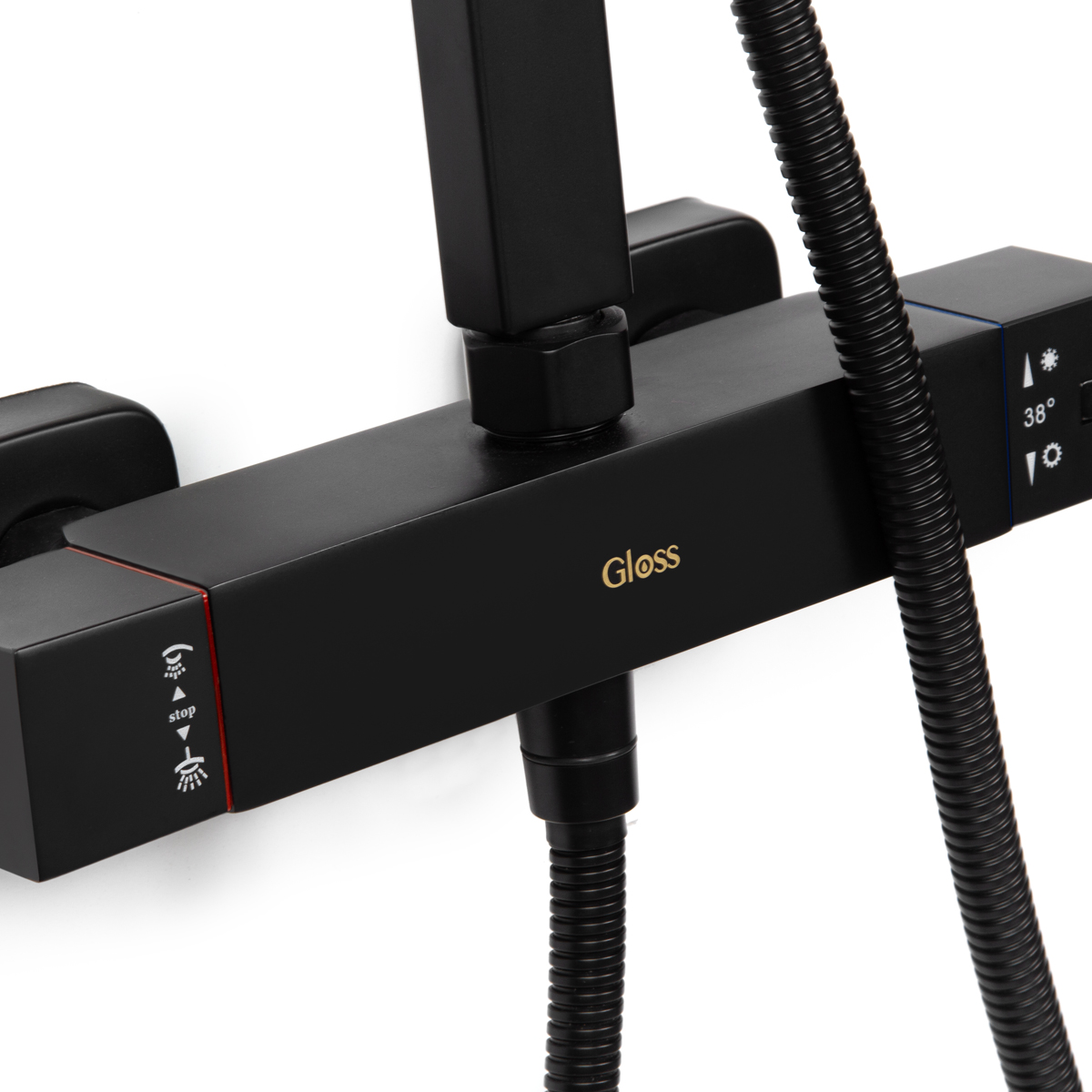 Juego de grifería termostática bronce macizo para ducha exterior con duchador extraplano anticalcáreo (2 vías) Black Edition.